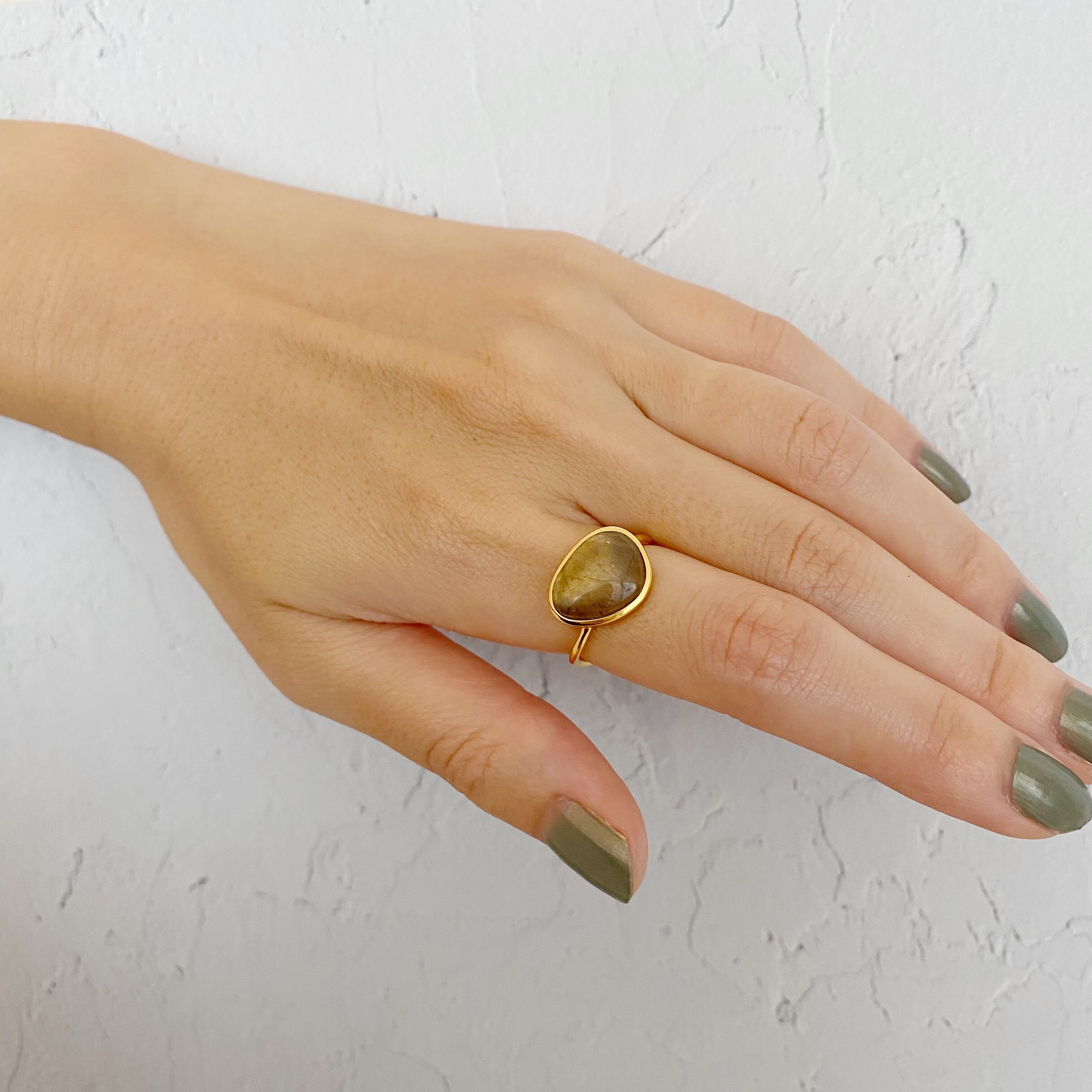 ストーンの存在感がありながらも華奢で使いやすいリングです。