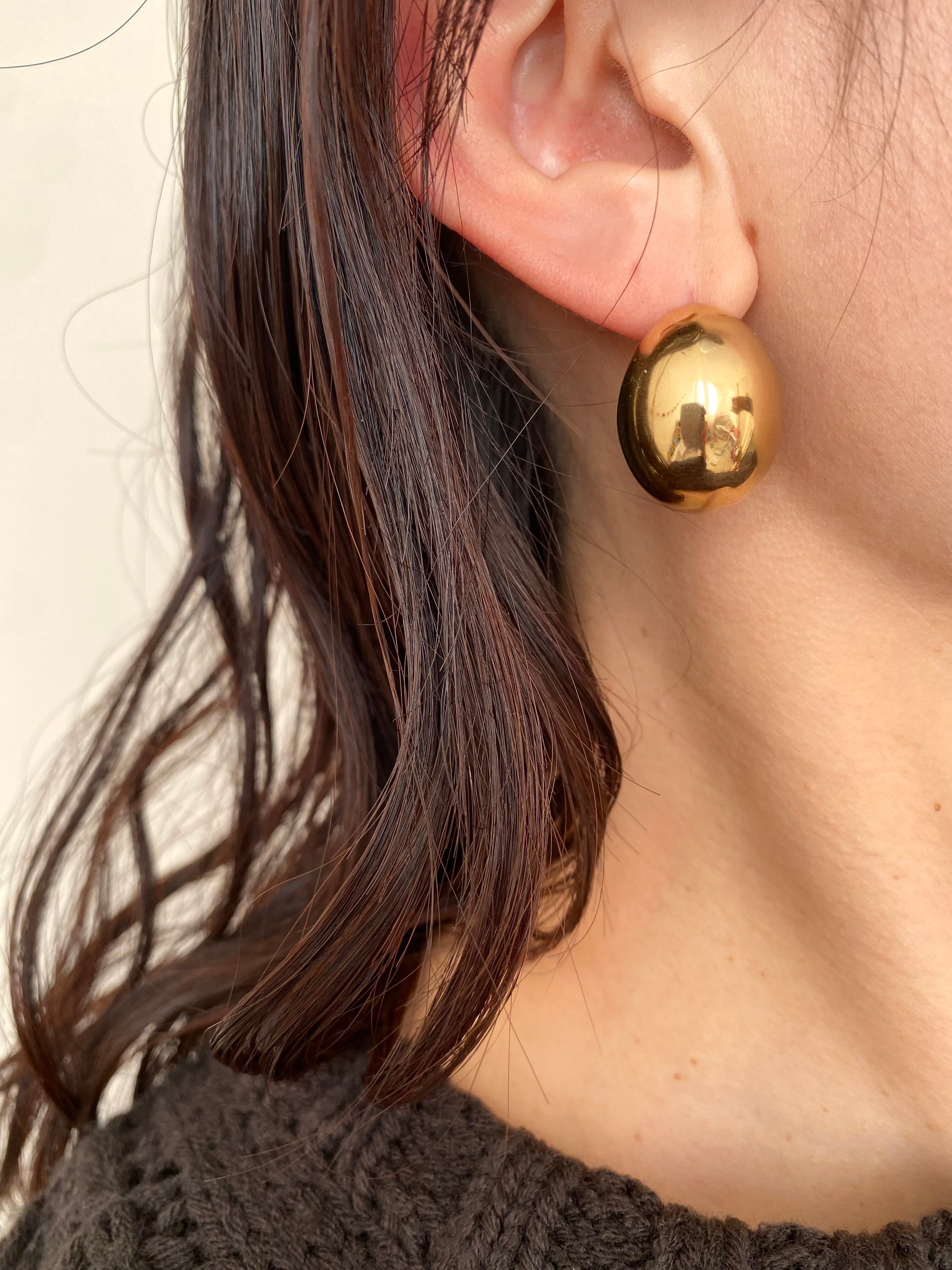 ぷっくりとボリュームがあり、つけるだけでお顔周りが華やかになります。冬のコートやトレンドのボリュームストールにも映えるピアスです。